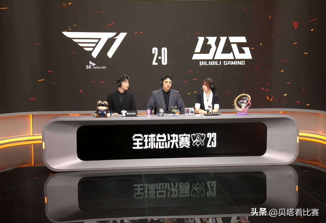 LPL官方解說鵬鵬、狼行和瞳夕也在賽后分析了BLG落敗的原因,他們認為:打T1這種英雄池很深的隊伍,BLG的BP很難做,不敢讓對面選牛,所以自己搶了,但是Keria還有塔姆,而且gumayusi的金克絲玩得非常好。現在大家都知道怎麼應對霞了,就用皇子,再選一個手長的AD。BLG現在急需解決的是一些英雄選擇的問題,不是說英雄選擇不好,而是他們需要更多的武器。其實兩場都是因為下路對線不舒服,導致節奏無法延續下去,第二局前期已經打出不錯的優勢了,只有下路劣勢,但是小龍團之后就打不了了。