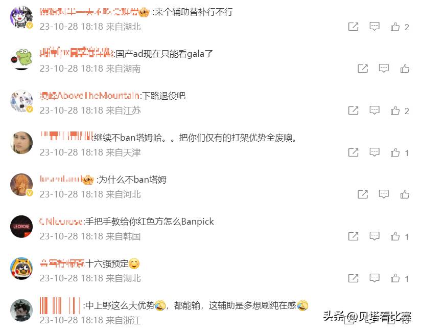 賽后BLG官博下方的最新評論如下,被罵得最慘的就是下路雙人組,主要是下路這兩場都是劣勢,而且T1的下路打出了非常關鍵的效果,反觀BLG下路確實沒打好。不少粉絲怒斥輔助ON,要求BLG趕緊準備一個輔助替補吧。也有人嘲諷ELK,表示國產AD現在只能看Gala。當然也有人責怪BP,質問為什麼第一局的塔姆無法處理,第二局還不ban掉?更有人要求下路兩個人都可以退役了。