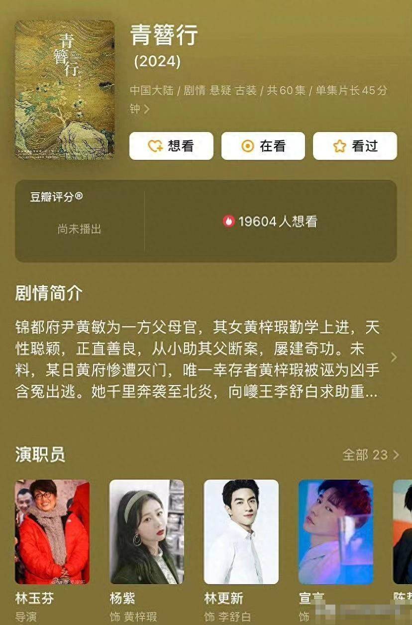 此外女主楊紫應該會拿出三周左右時間來配合林更新的補拍,畢竟都是男女主,很多都會在一起的,因此還是需要楊紫的進場的!三周左右把他們倆的戲份拍完是沒得問題的!其他的只需要男主了!網傳這部劇《青簪行》已經在籌拍中,或將9月份補拍!