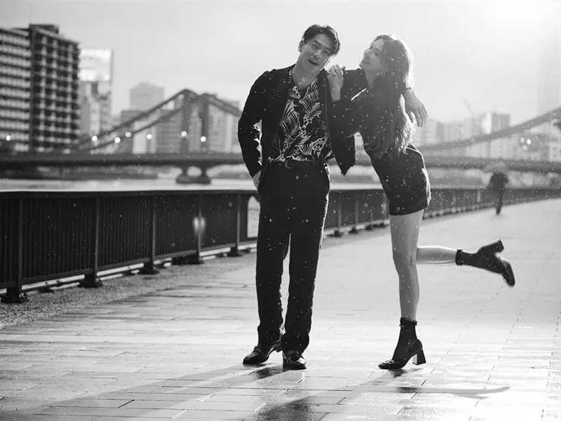 林志玲虽然比丈夫大7岁,但她在黑泽良平面前像个小女孩一样,夫妻俩一时相依偎,一时在双手不放开的状况下将距离拉到最大,似乎在嬉戏打闹。