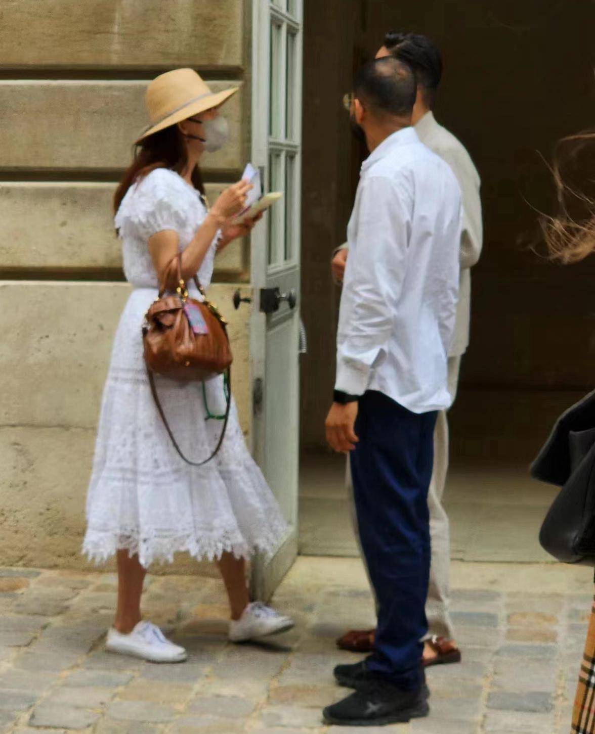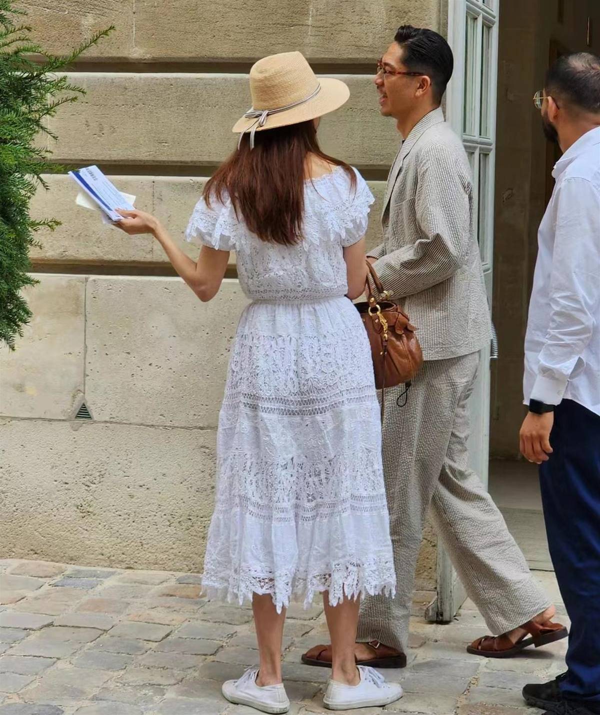 48岁的志玲姐姐,穿着一条白色连衣裙,婚后的她在打扮方面偏向简单舒适。