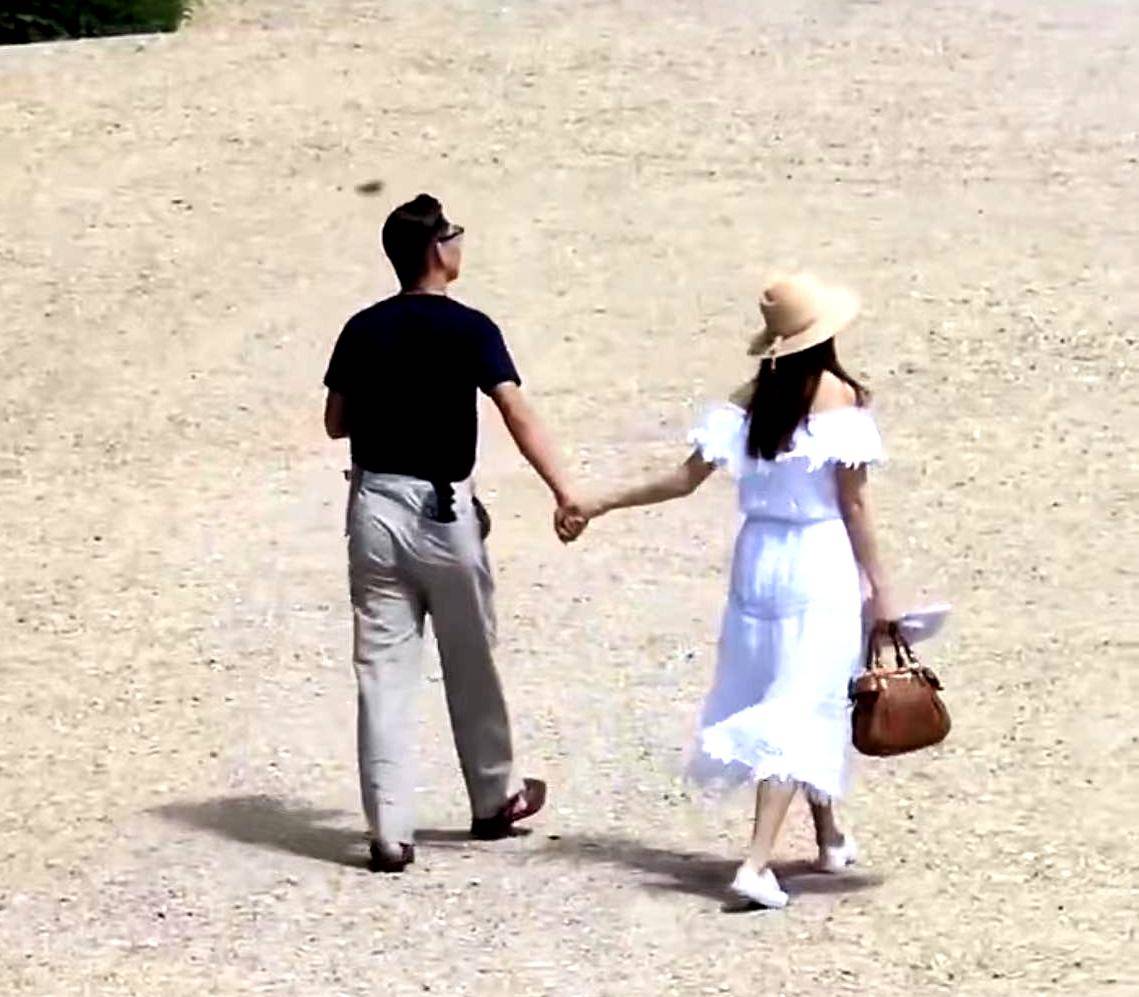林志玲夫妇参观完凡尔赛宫的内景之后,两人就手牵手到宫殿外的花园散步。