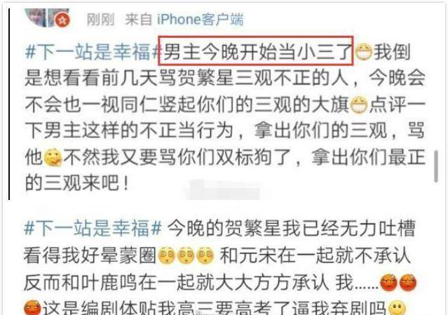 而在這個過程中,元宋被網友掛上了「男小三」的標簽,且還因為三觀的問題,此劇被狂批「高開低走」。
