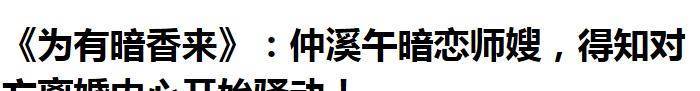 去年10月熱劇《為有暗香來》中的設定,也有點「禁忌」之感,畢竟原本女主華淺,最初執迷的是并不愛自己的男二號仲夜闌。