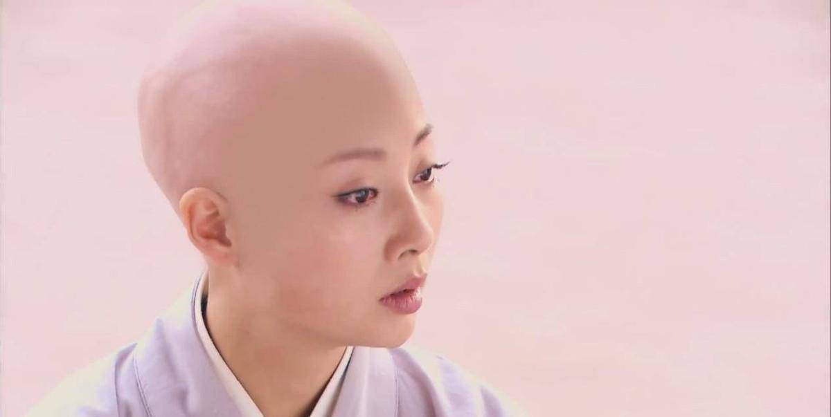 殷桃在出家当尼姑时也是她首次尝试光头的形象,虽然利用了假发套却也呈现出了一个光头美女的样子。