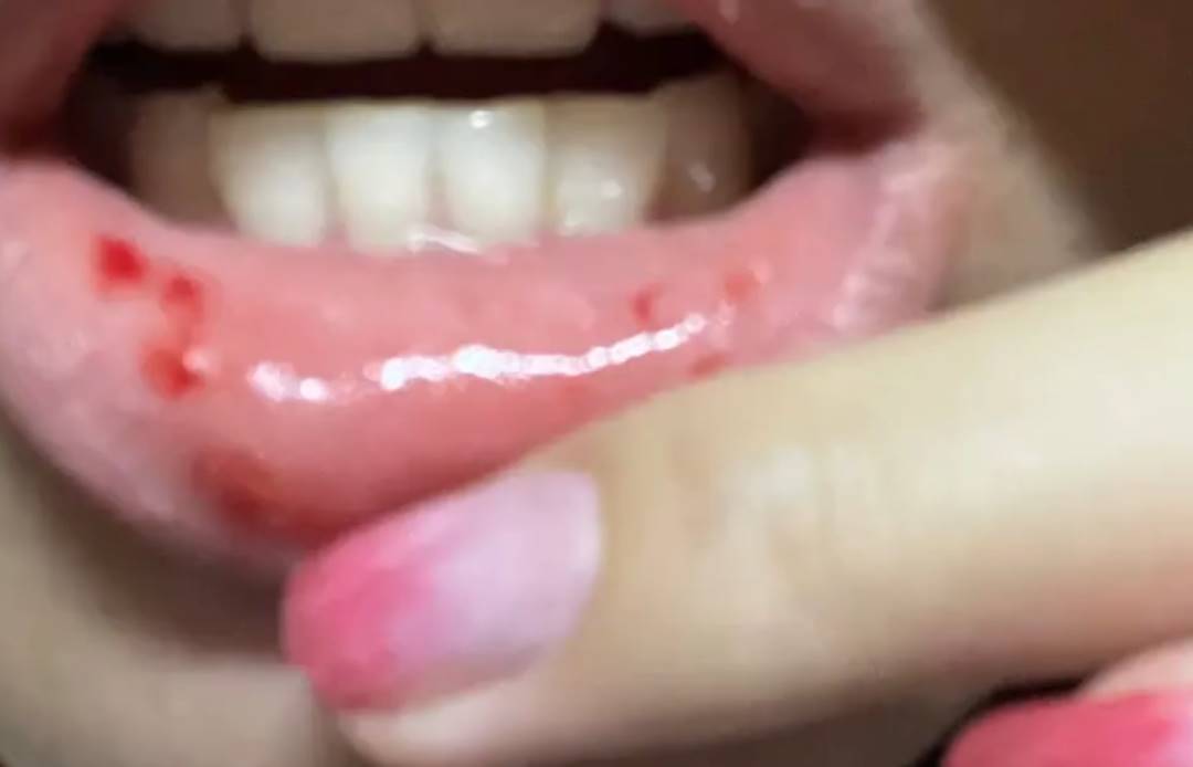 「我吃了一整個,結果吃到最后的時候,我的舌頭就出了很多血……后面就是昨晚嘛,我就發現舌頭缺了挺大一塊的,很明顯的缺口。