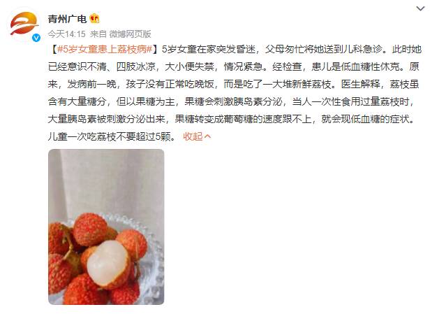 不過這種說法其實比較勉強,因為比荔枝果糖含量高的水果其實還有很多,但這些水果吃下去并不會產生和「荔枝病」類似的癥狀。