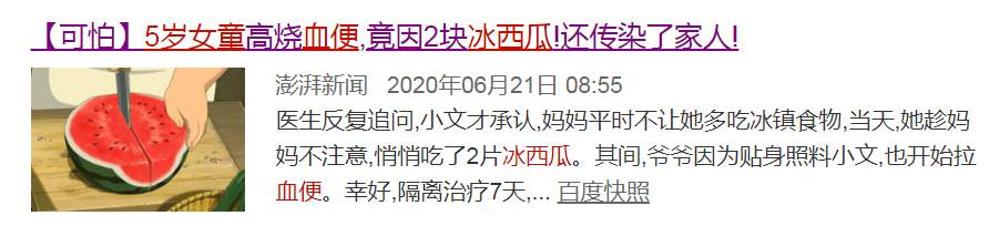 冰瓜雖好,但局長這里要提醒大家,這樣的「吃瓜姿勢」其實是存在一定健康隱患的。福州一個5歲女孩,吃了2片冰西瓜后,發高燒到40℃,還拉血便!