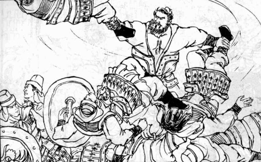 典韋見到曹操時,恰逢賬下大旗被大風所吹,岌岌欲倒,眾軍士挾持不定,典韋一只手就穩住了旗桿,被曹操評價為「古之惡來」。