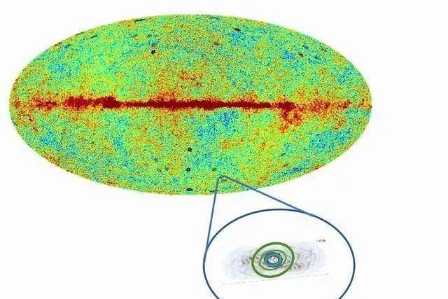 要了解宇宙循環理論,想要引入一個知識點,霍金點。霍金點指的是在宇宙微波背景輻射上類似漩渦狀的現象。下圖就是由普朗克衛星拍攝的最精細宇宙微波背景輻射地圖,在這個地圖中,羅杰總共找到了大約有30處這樣的點。羅杰認為這些點是宇宙黑洞蒸發后形成的痕跡,而霍金是提出黑洞理論的人,因此他用霍金點來代指這些旋渦狀的現象。