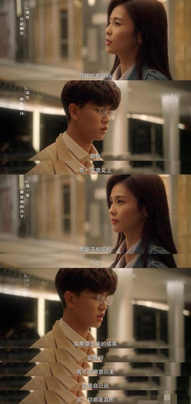 其次,時宜問周生辰是否相信算命,隨后她給周生辰看手相,并說兩人有前世的緣分。