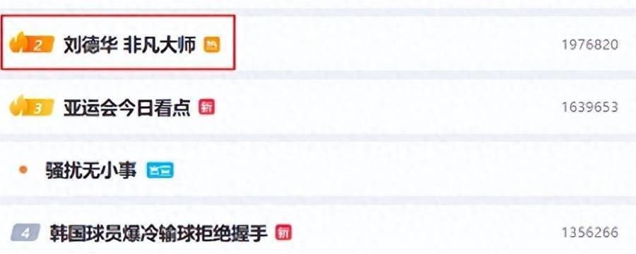 >沒想到,一張截圖居然讓劉德華再次登上熱搜,甚至略超了亞運會的熱度。