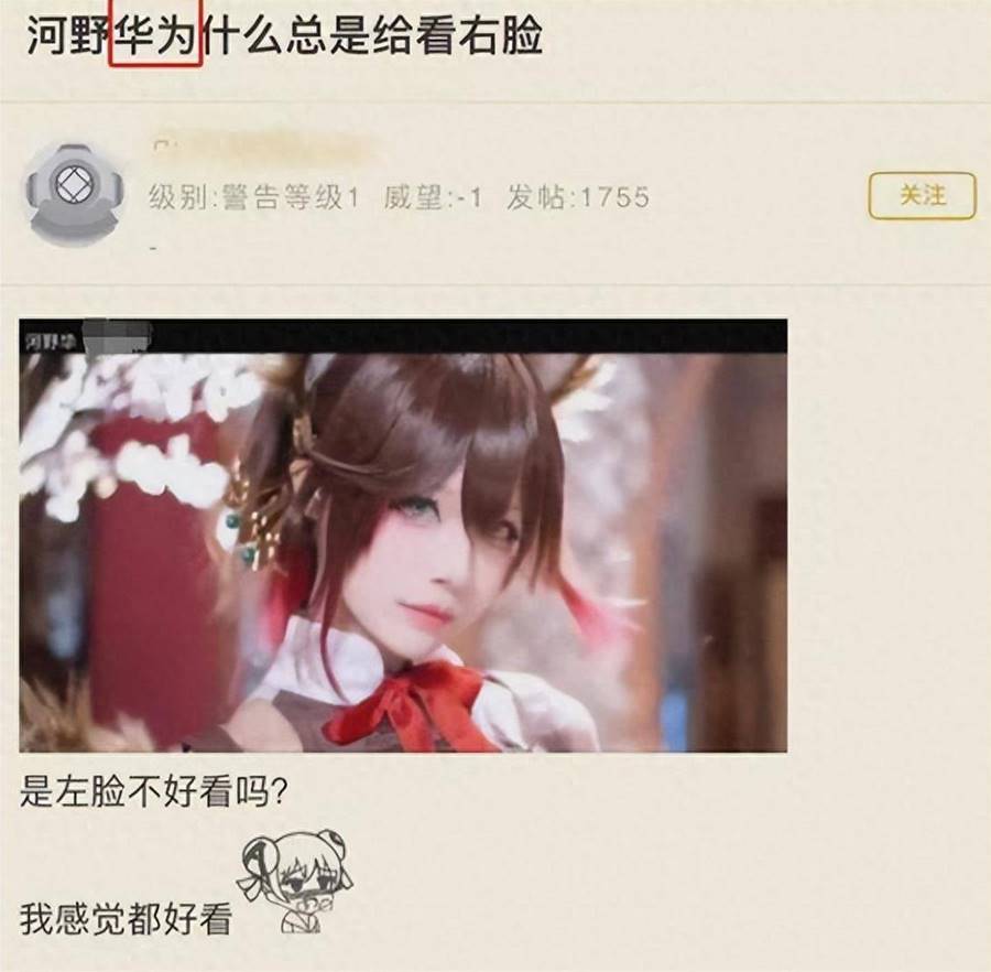 一位熱愛動漫的網友在社交平台上提問:為什麼何夜華總是露出右臉?左邊不是很漂亮嗎?我覺得他們看起來都不錯。