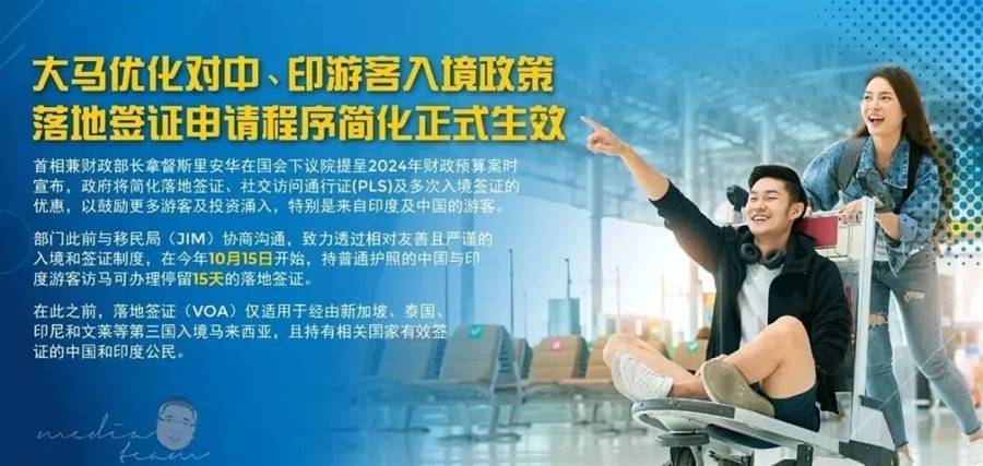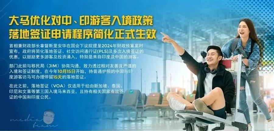 稍早前,首相兼財政部長拿督斯里安華在國會下議院提呈2024年財政預算案時宣布,政府將簡化落地簽證、社交訪問通行證(PLS)及多次入境簽證的優惠,以鼓勵更多游客及投資涌入,特別是來自印度及中國的游客。