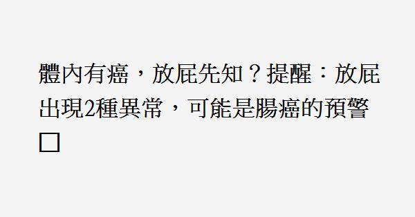 二、經常放屁是腸癌的徵兆嗎? 「我不就是放屁多了點,臭了點,怎麼就腸癌了」27歲的小敏(化名)前段時間不管吃什麼,屁總是特別多,而且很臭,一開始以為是飲食太辣導致腸胃不適,吃了腸胃藥就不管了。