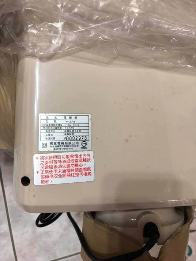 原來這台電暖器,後面的製造年份竟然寫著民國94年,竟然是14年以上的產品,讓網友有夠傻眼,尤其除了外觀讓人難以恭維外,還有一隻蟑螂卡在上面,讓他頻頻搖頭:「不想提供禮品就不要提供!」