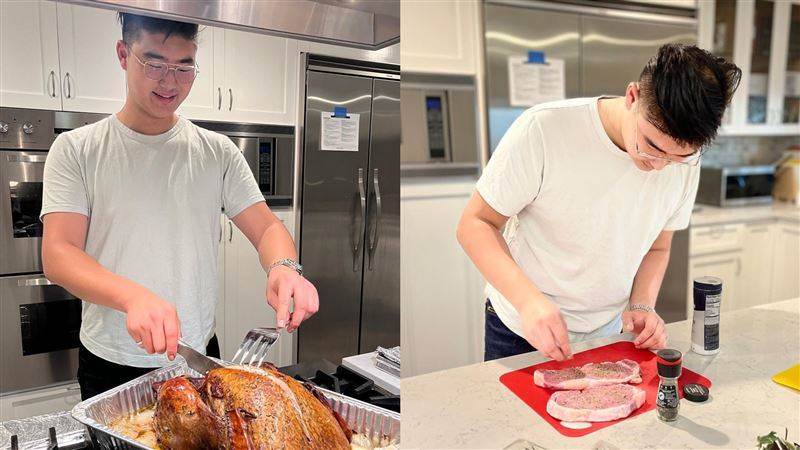畫面中的男子擁有濃眉、瞇瞇眼,戴著細框眼鏡,並親自料理牛排、烤雞等大餐,還驚喜送上愛馬仕粉色手環,對孫瑩瑩相當體貼。不過他的真實身分也隨孫瑩瑩的文字曝光,她用英文寫下:「我的兒子、我的廚師、我的聖誕老人。謝謝兒子策劃這麼難忘的聖誕節。」