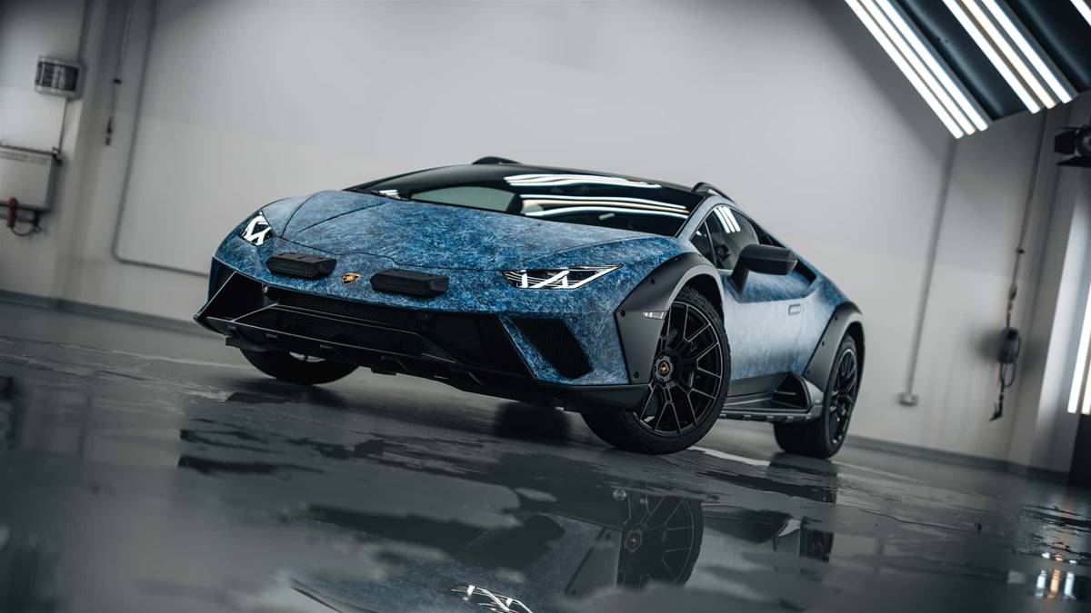 這款車命名為Huracan Sterrato Opera Unica,由蘭博基尼高端定制部門Ad Personam開發,車身表面經過特殊處理,并仿照撒丁島的海洋和天空一天,手工噴涂三種顏色,模仿出冰凍液體的水晶效果。