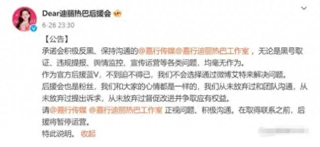 只不過大粉是覺得迪麗熱巴真的戀愛了,卻瞞著粉絲暗戳戳秀恩愛,根本不負責,在脫粉后還曬出了很多的時間線。而后援會則是想用離開的方式,逼著工作室正面回應,說藝人沒有戀愛沒有生孩子,可即便已經跑路,都沒有得到工作室的回應。