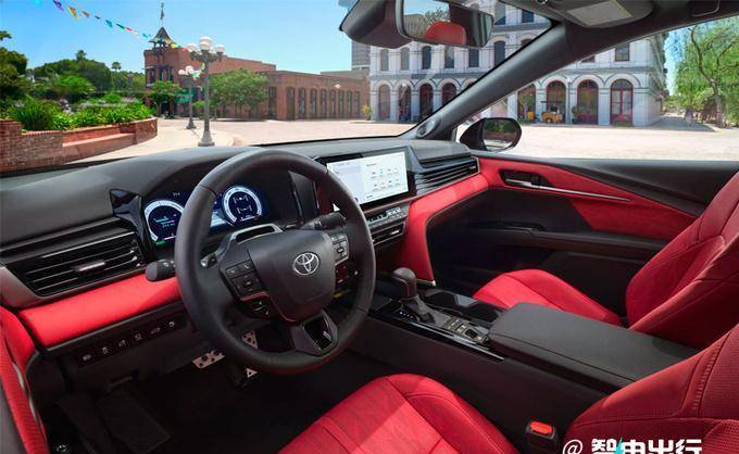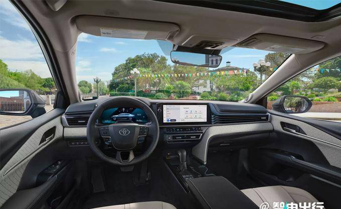 內飾部分,豐田第九代凱美瑞車型提供了全新造型的三輻式多功能方向盤,并搭載7英寸液晶數字儀表以及8英寸/12.3英寸液晶中控屏幕,下方還提供了傳統的機械式換擋機構。