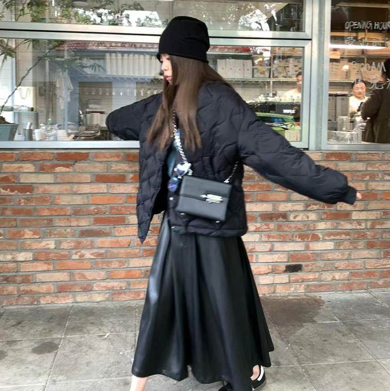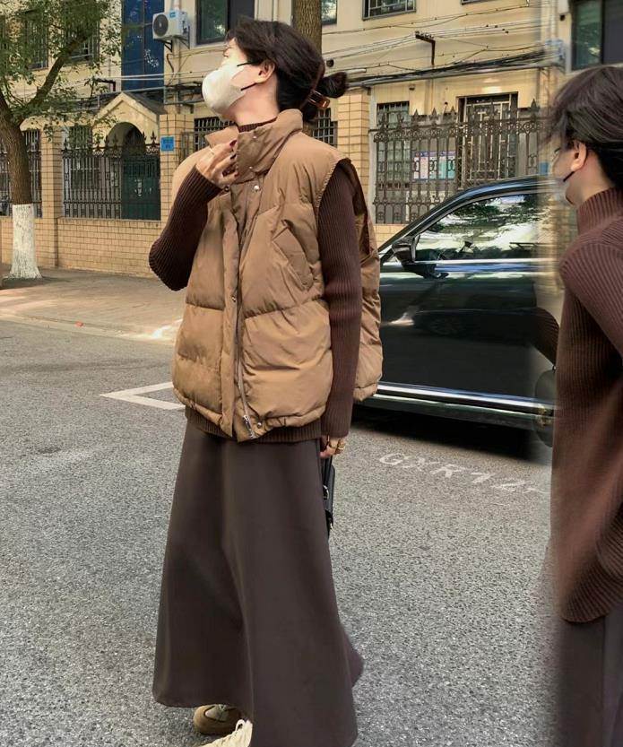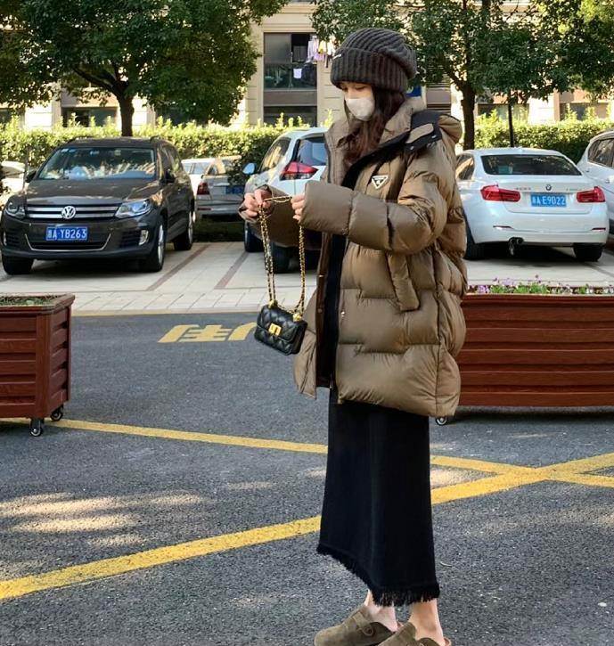 這件羽絨服簡直不要太好穿了,搭配針織半身裙好顯瘦啊,慵懶休閑,還帶著幾分隨意。