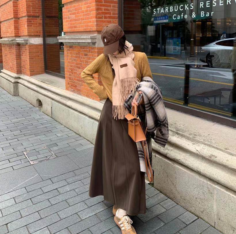 梨形的身材和a字半裙到底有多搭,相信只有穿過的人才曉得了,秋冬同色系的穿搭真的很哇塞,顯高級不說,還能減少出錯率。