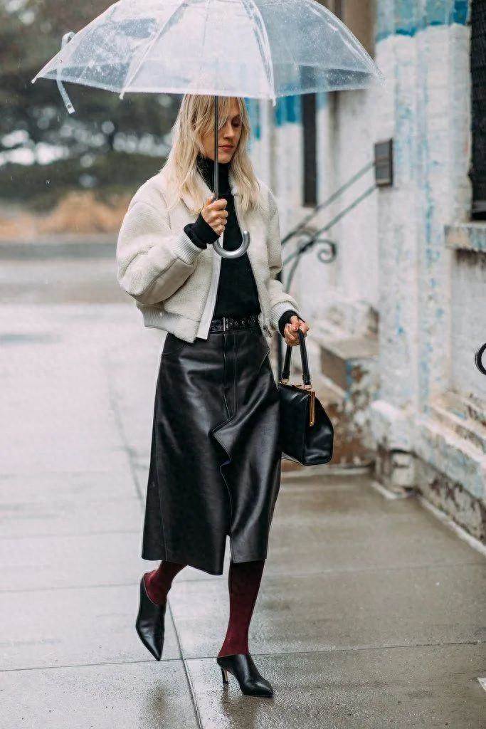 今年酷帥的皮質半裙又吹遍了時尚圈的每個角落的,比起在夏天,皮質的單品更適合冬日。因為它抗風、耐穿密實,寒冷的冬季穿起來就可以很好抵擋寒風。