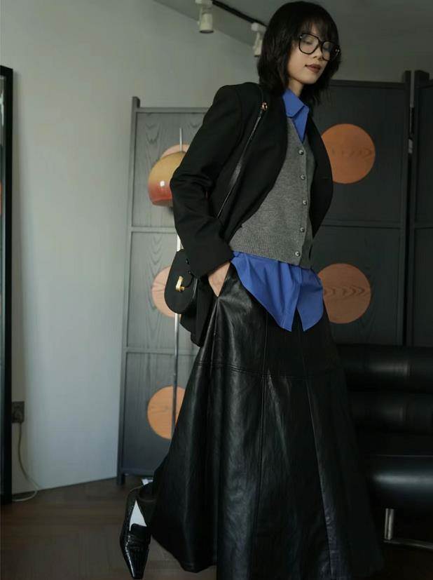 受皮質外套的影響,今年皮質半裙也是今冬的主流,特別是a字半裙,百褶半裙,這些裙身版型巧妙遮掩身上的缺點,超級顯瘦。