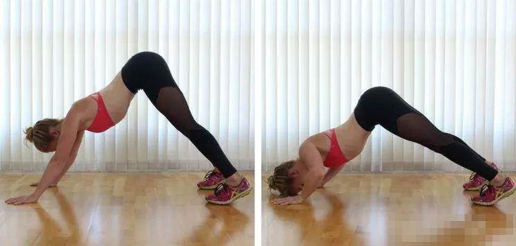 雙手雙腳同肩寬,手腳間距約一腿長 手臂、雙腿伸直,腳跟下壓地面 肩頸放松、脊背延展、胸腔打開 收腹收肋骨,坐骨找天空 呼氣,曲手肘、重心向前向下 吸氣手推地,伸直手臂還原至下犬 重復以上動作5次 ............................................................ 背薄如紙,也是健康的表現哦!鍛煉肩背還可以很好的緩解肩頸問題和消除不良體態。建議大家多多練習這組體式,堅持練習才能看到美麗的肩背和手臂哦~ (圖文來源網絡,如涉及原作者權益,請聯系小編刪除)