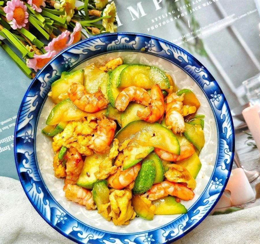 食材:西葫蘆1個、蝦仁200克、雞蛋2個