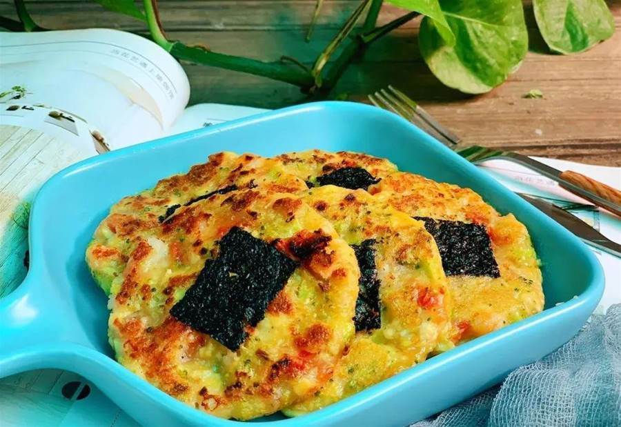 食材:豆腐1塊、鮮蝦10只、番茄半個、西藍花4小朵、玉米淀粉10克、橄欖油少量、海苔6片、鹽少量