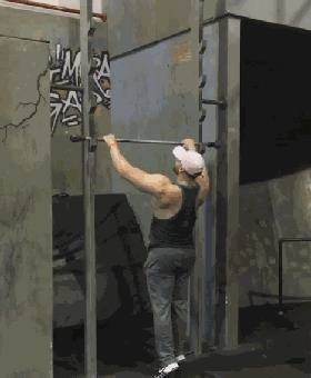 普通的引體向上已經不算什麼了,他直接用一根直桿做引體向上攀登了。