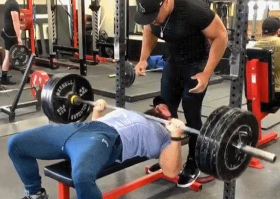 在健身房,如果你能推起100KG的杠鈴就相當不錯了,他居然可以完成183KG的臥推重量,而且還不需要別人輔助,動作還到位。
