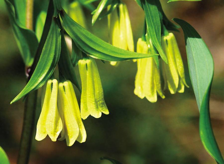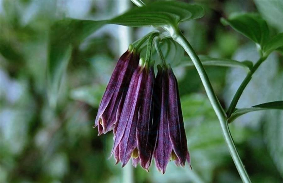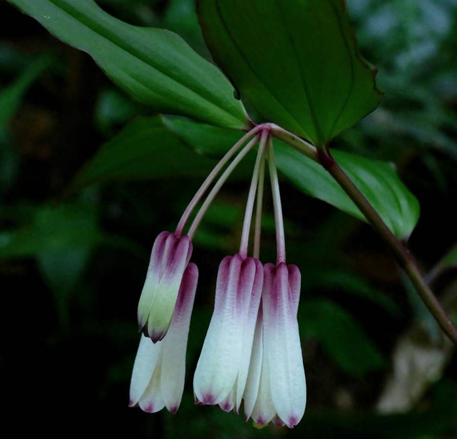 花開如鈴鐺一樣倒掛著,溫順而謙遜。花期為每年的5~7月,果期8~10月。花色主要有淡黃、深紫、白色,長傘形花序有花3~10朵,著生在與上部葉對生的短枝頂端,花被片斜出,倒披針形,雄蕊內藏,花柱連同柱頭長為子房的3~4倍,花絲長0.8~1.1厘米;子房長約3毫米左右。果實成熟為有光澤的藍黑色,有2~5顆種子。根部由多個圓柱形肉質須組成,有些像大蒜根,長6~20cm,直徑1~3.5mm,稍有彎曲,表面灰黃白色,氣微,味淡,嚼之發黏稠感。