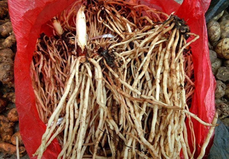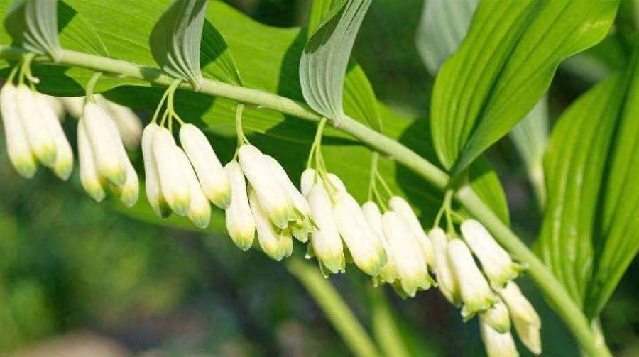 萬壽竹與黃精均屬于百合科草本,它們的葉子初看幾乎一模一樣,同樣的大小,同樣的脈絡,不過仔細辨認,會發現它們有些不同之處,它們最大的區別在于根部,萬壽竹的根部是由許多粗細不一的須根組成;而黃精的根部是呈塊莖,像黃姜一樣,由多個連接的塊莖組成,呈長條狀。