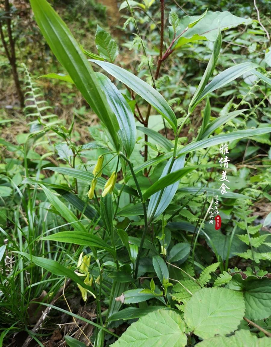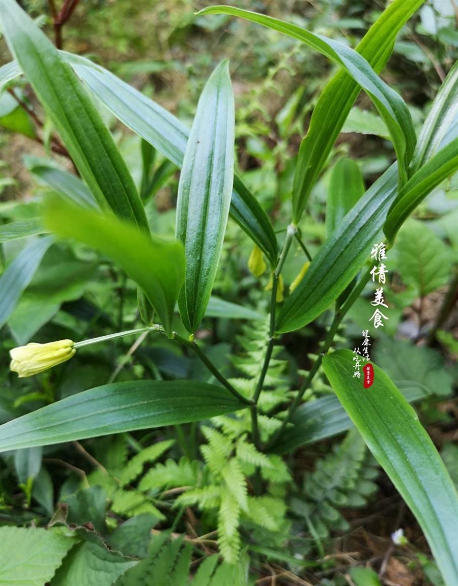 這不上個月去鄉下,在一片竹林坡下發現一株孤零零貌似姜科的植物,開著淡黃色的垂落狀花朵,因為叫不出名字,拍了幾張照,用「形色」app對照,才知道此物叫萬壽竹,長得與黃精很像,俗稱「百根藥」,又叫「止咳草」,藥用營養價值都高。