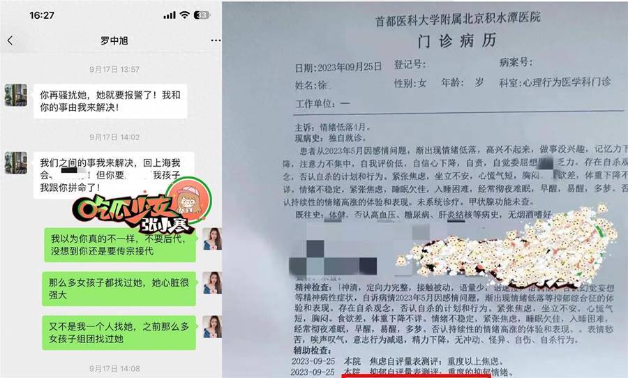聊天記錄顯示,九月后兩人發生了激烈爭吵,羅中旭要求小李不要再騷擾他和家人。隨后,小李公開了自己的抑郁癥證明,這表明他的自盡風險非常高。
