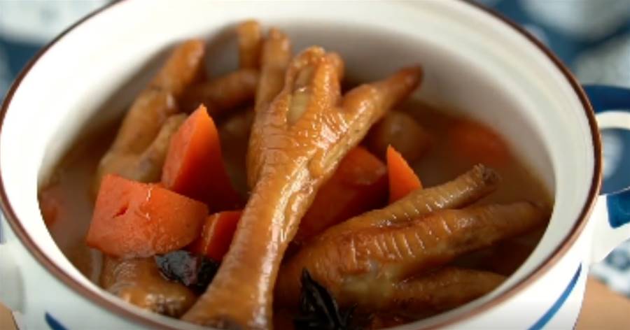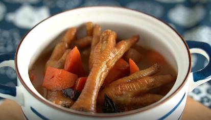 (2)向鍋中加入適量清水煮沸,放入除雞腳以外的材料慢火煮20分鐘,再加入雞腳煮約30分鐘,調味即可。