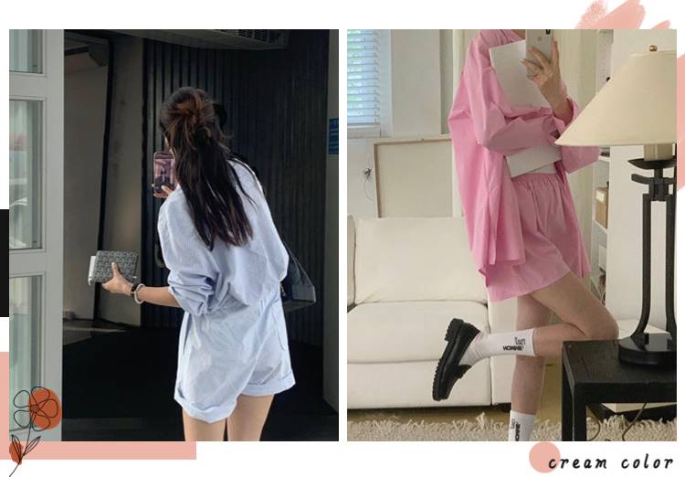 還可以整套穿襯衫set,條紋襯衫更有職場感。