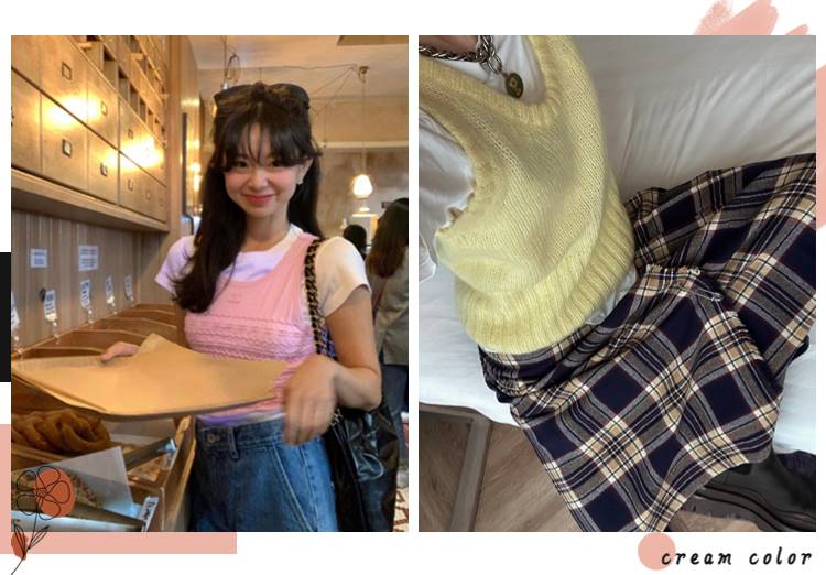 奶油色小馬甲很適合疊穿白t,襯得人軟乎乎der~