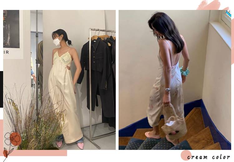 奶油色吊帶可以很好地平衡露膚度高帶來的性感,純欲get!