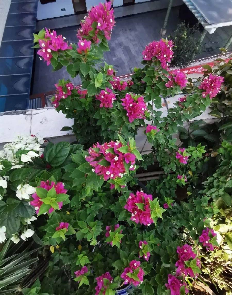 三角梅可以種很多年,可以爬上8層樓,也能長成參天的大花樹,花開無數,掉落的花瓣可以鋪成紅毯~