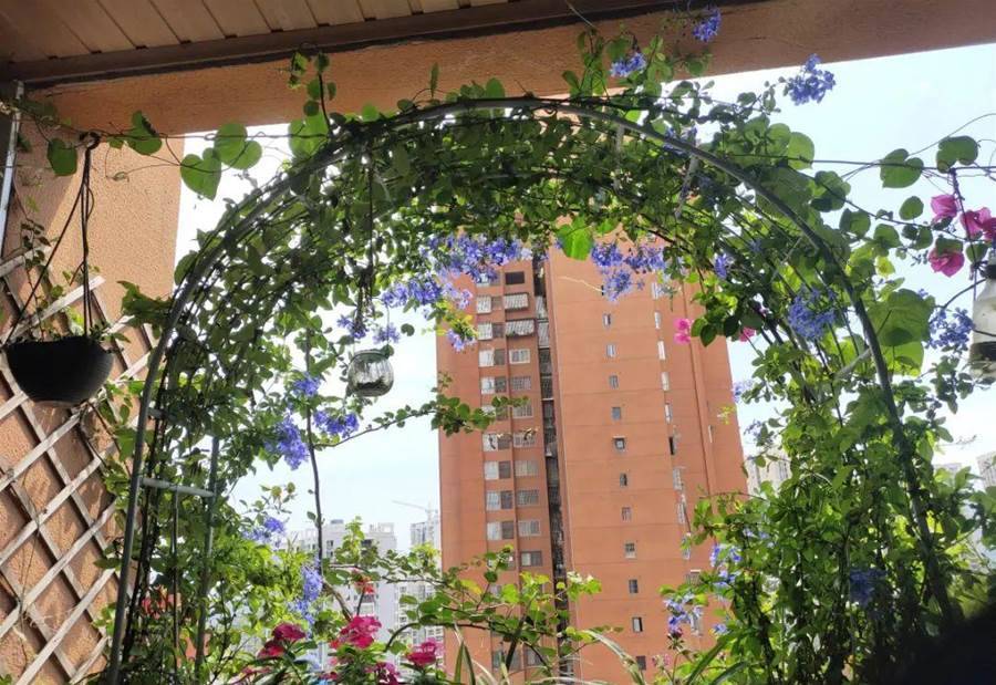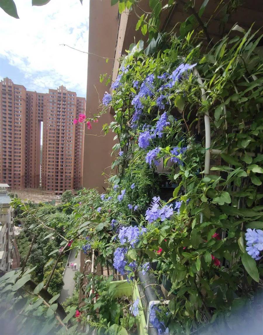 藍雪花可以當做爬藤來養,一個夏天就能竄上墻去,如果是地栽,根本不用管。