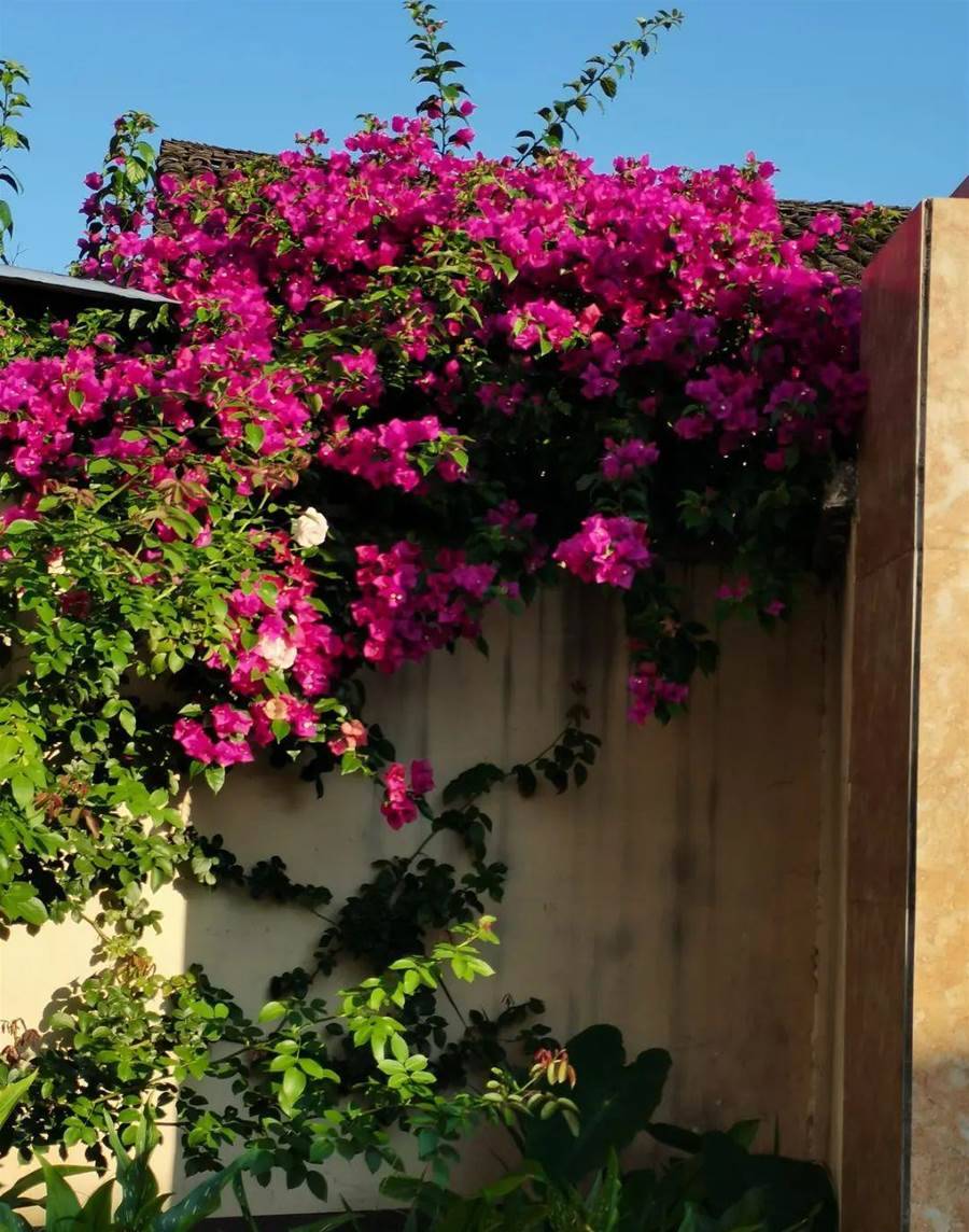 如果在家門口種一棵三角梅,那真是太浪漫了,它能多季節開花,而且每次都是花開不見葉,種在大門口非常喜慶。