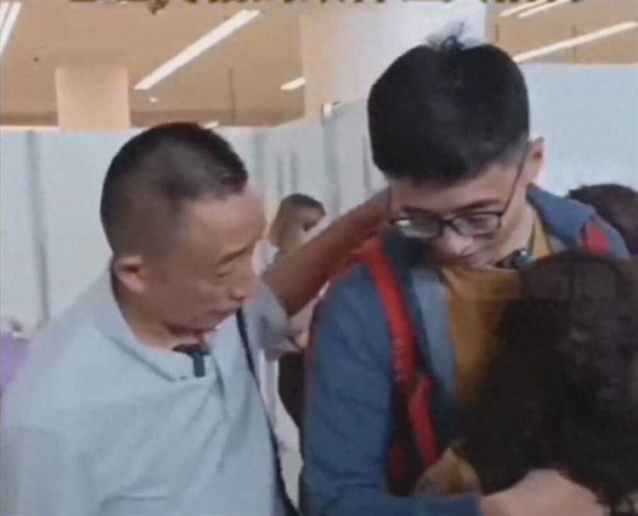 早早抵达机场的妈妈,一见到儿子就扑了上去,眼泪夺目而出。