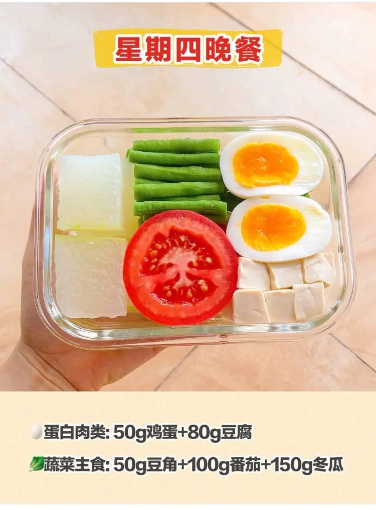 蔬菜主食:50g豆角+100g番茄+150g冬瓜