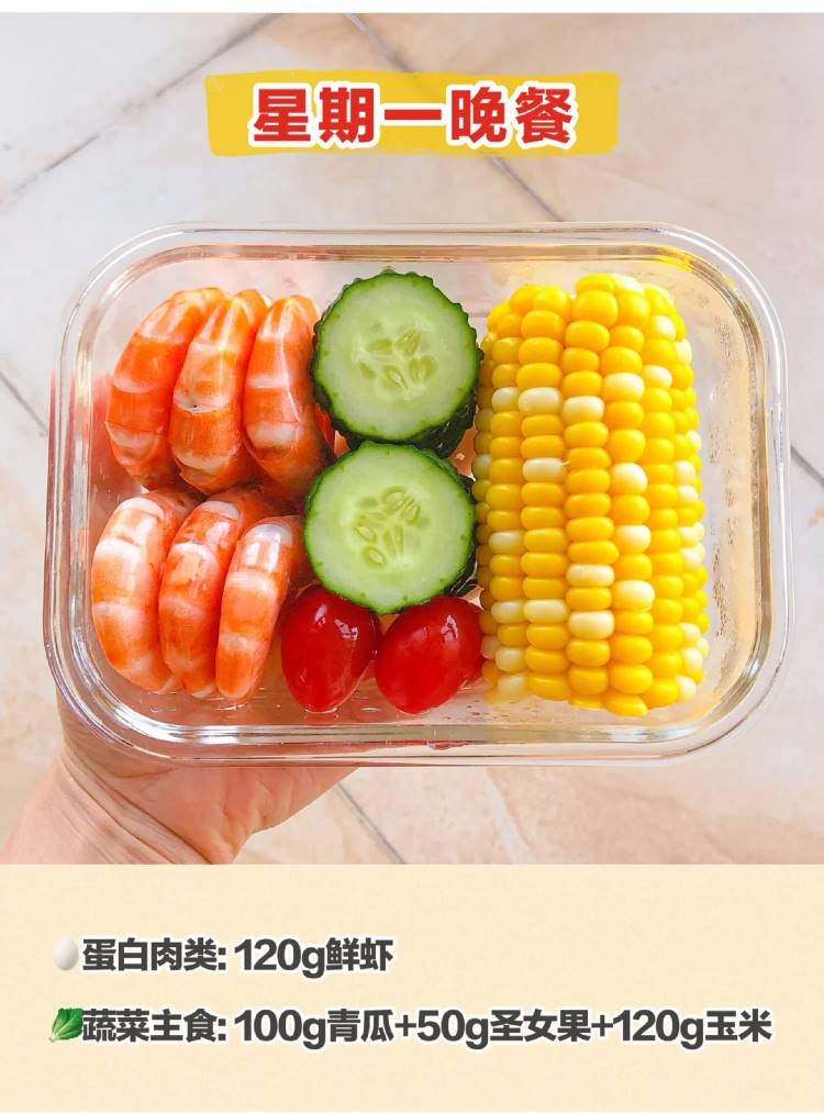 蔬菜主食:100g青瓜+50g圣女果+120g玉米