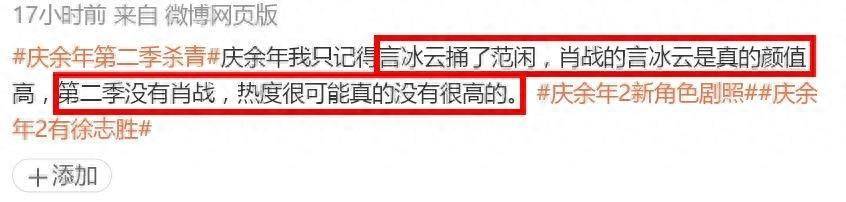 網友表示《慶余年》只記得言冰云捅了范閑,并大贊「肖戰的言冰云是真的顏值高,第二季沒有肖戰,熱度可能沒有很高」。