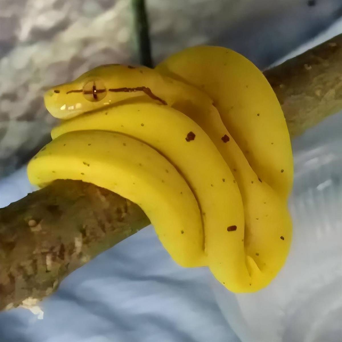 15. 這是一條卷著身子趴在樹枝上的黃色毒蛇,如果不知道真相還真可能誤把它當成了香蕉。