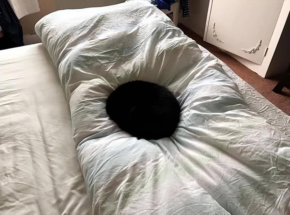 12. 你能想象在夜里打開臥室的燈,突然發現這麼一個「洞」,估計會讓人驚慌失措。圖片上的「黑洞」是什麼?你能看出來嗎?許多人說是一只貓,你怎麼看?